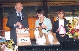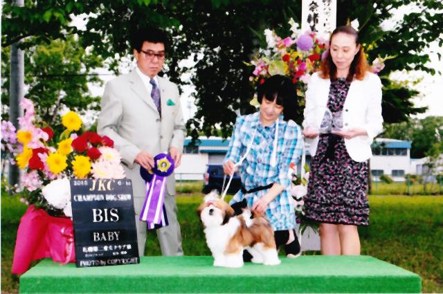 初めてのショーで、ベストインショーを取りました。お父さんは カナダチャンピオンの RUSTINWOOD`S HAPPY CANPER