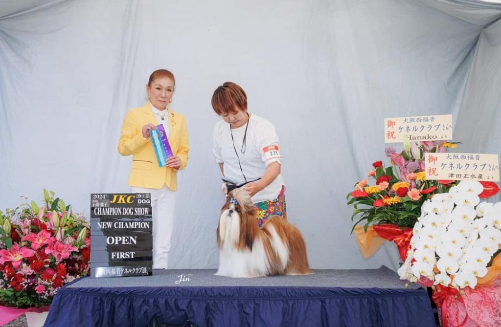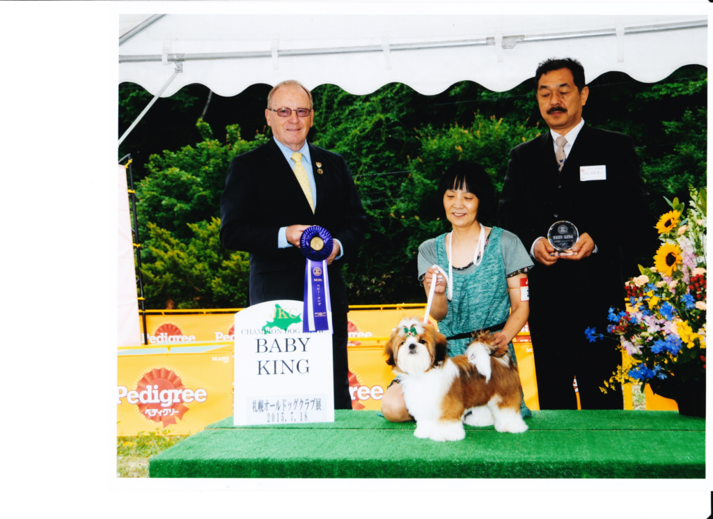 パピーの頃に来日し、コートを伸ばしショーに臨みました。